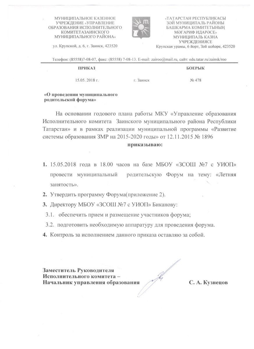 Приказ УО о проведении муниципальной родительской конференции "Летняя занятость" (приказ) (приложение)