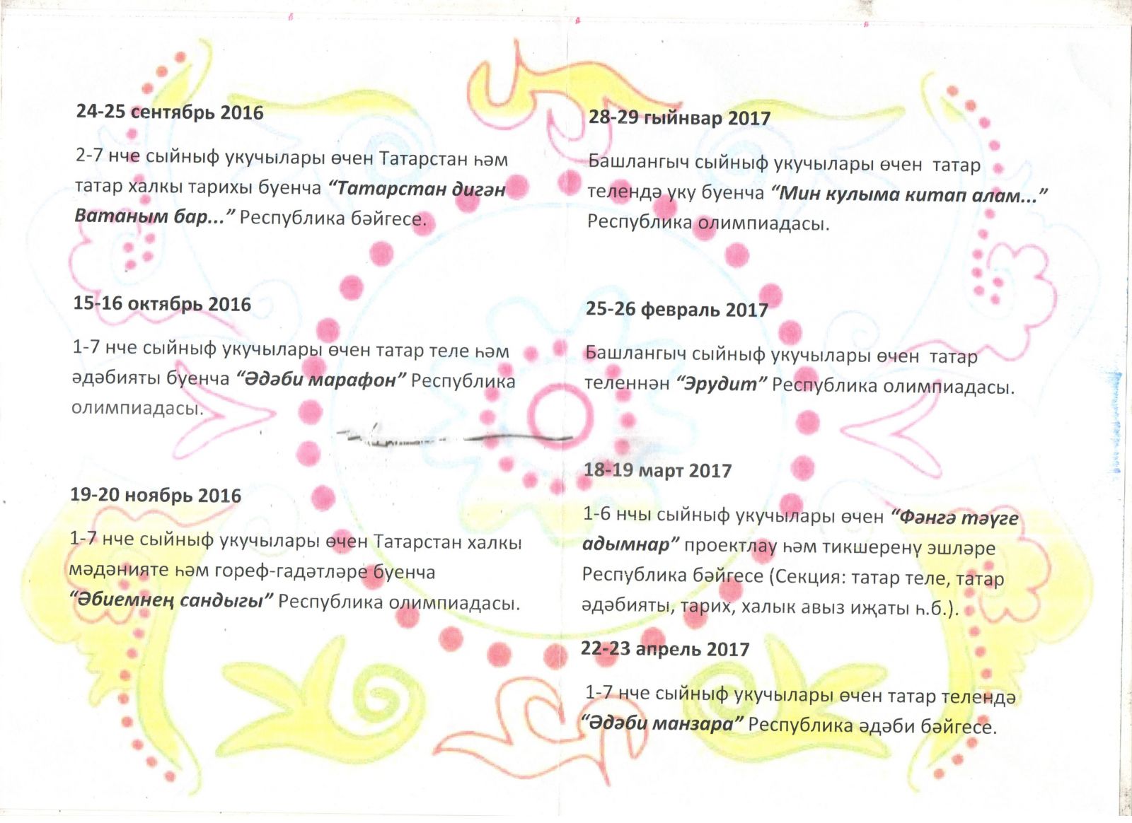 Конкурсы по татарскому языку и литературе (лист 1) (лист 2)