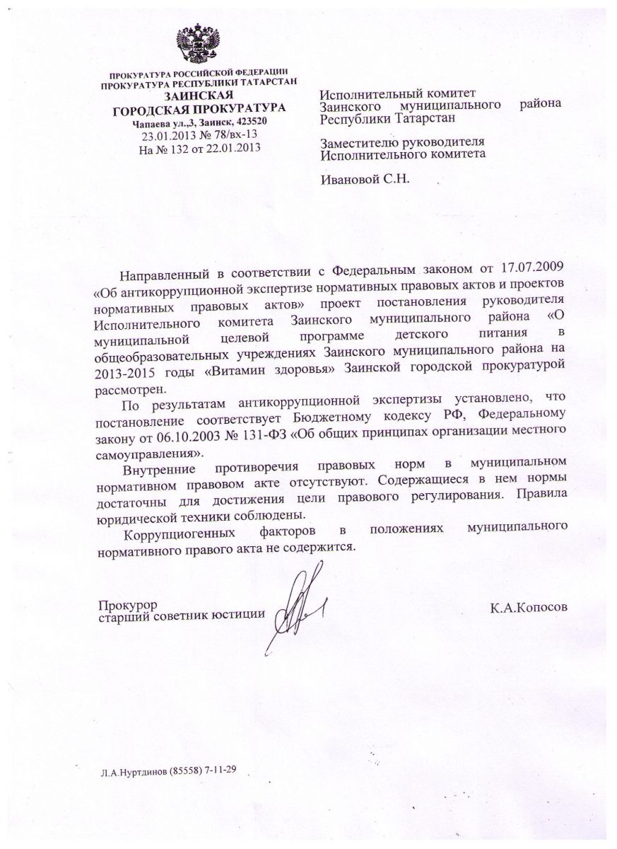 Решение прокуратуры по муниципальной целевой программе "Витамин здоровья"