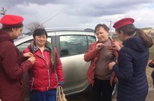 Идет Всероссийская акции «Георгиевская ленточка». Юнармейцы нашей школы поздравили рабочих агрофирмы «Восток».