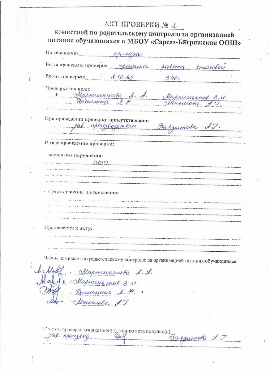 Приказ о создании комиссии по контролю за организацией и качеством питания