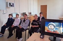 Урок сопровождался показом презентации об истории космонавтики и о первом полёте человека в космос, демонстрацией видеофильма о старте ракеты с космодрома Байконур. Ребята приняли участие в тематических викторинах.
