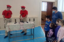 Юнармейский отряд школы имени ветерана ВОВ Осипова Н.В.в преддверии Дня защитника Отечества провели мероприятие. Юнармейцы познакомили детей старшего возраста с деятельностью своего отряда, показали сборку и разборку автомата.