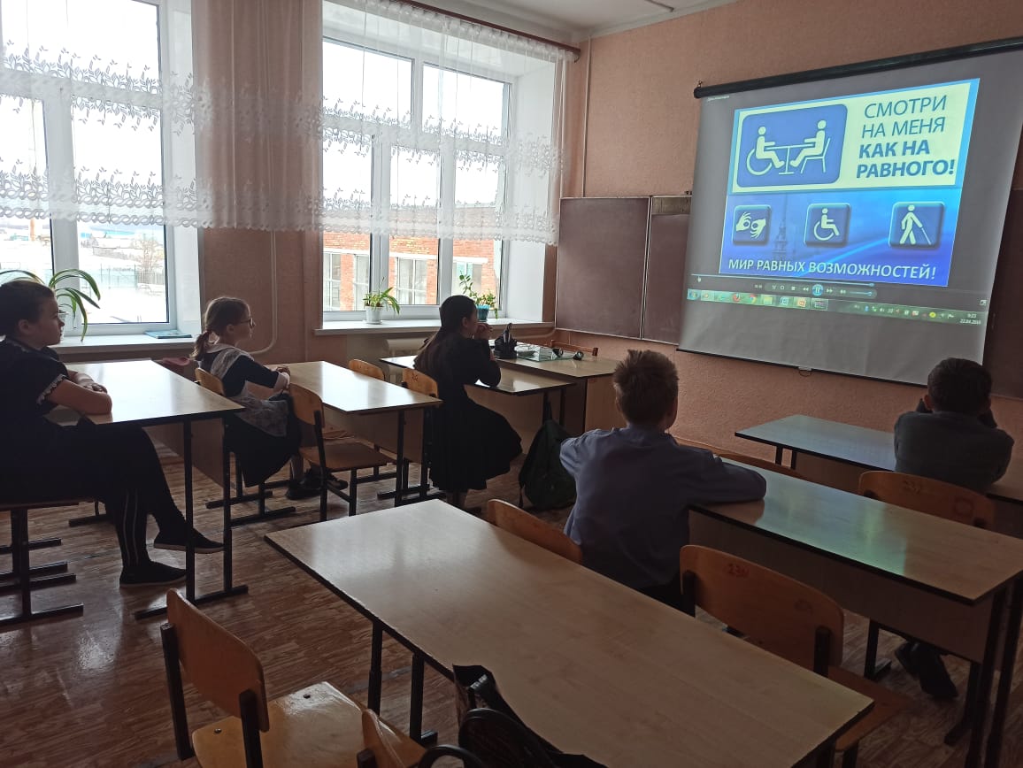03 декабря 2021 года в 5-6 классах прошел классный час на тему "Будем добрыми и человечными". С учащимися просмотрели видеоролик, в котором рассматривался вопрос об отношении окружающих к людям с ограниченными возможностями. Далее состоялась беседа о том, какую помощь можно оказать таким людям, проживающим в нашем селе, что нельзя оставаться равнодушными к их проблемам, какая помощь оказывается им со стороны нашего государства.