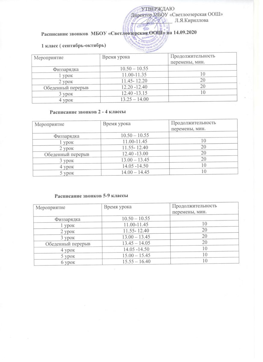- Время проведения уроков и перемен создано с учетом эпидситуации