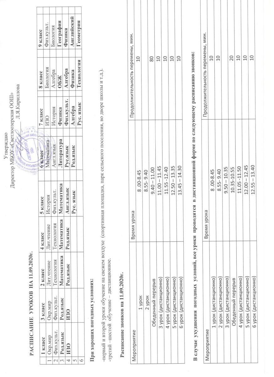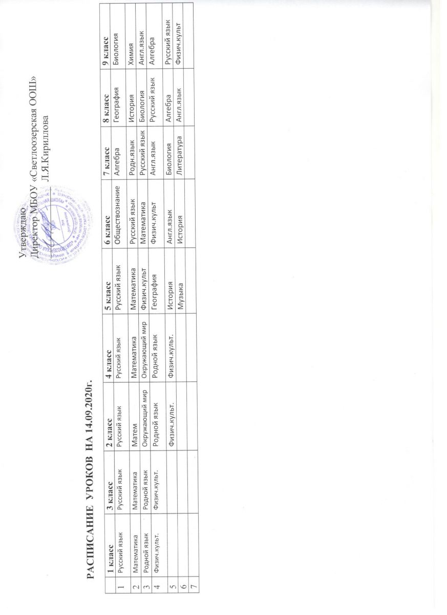14 сентября 2020 года обучение проводиться в очной форме. Расписание уроков и звонков доступно в ссылке________________________________________