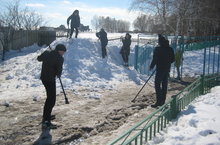 Наступила долгожданная весна. Зима еще отступать не собирается. Снега много в этом году. После уроков учащиеся 7 класса вышли на средник раскидывать снег возле школы. Весеннее настроение сказывается и на детях. Они веселые, бодрые, поработали на славу.