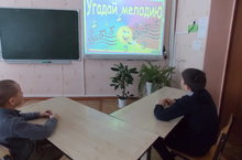 26 декабря с учащимися начальных классов была проведена игра «Угадай мелодию». Целью данной игры было расширить кругозор учащихся, развивать их творческие способности. Ребята угадывали песни о друзьях, о животных, из мульфильмов, новогодние, о дружбе. В финал вышли Москов Булат и Слепцов Илья. Они были награждены сладкими призами.