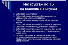 Инструктаж по ТБ на осенние каникулы 29.10.2016