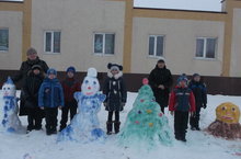 Тёплая зима не помеха для строительства снежного городка. Только стоит такой городок совсем недолго.
