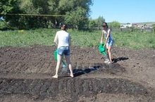 На славу потрудились ребята. Мальчики и девочки 7,8 классов поливали грядки (свекла, лук, морковь). Ишмянов Виталий и Пляшев Василь собирали мусор на территории школы. Девочки младших классов поливали клумбы, высаживали рассаду томатов и перцев.