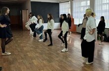 Советник директора по воспитанию сначала объяснила, почему разделили школьников на группы: учащимся начального звена помогала делать зарядку ученица 8 класса Литюк Надежда, которая входит в Движение Первых. А в средних и старших классах - делали упражнения самые ответсвенные дети.