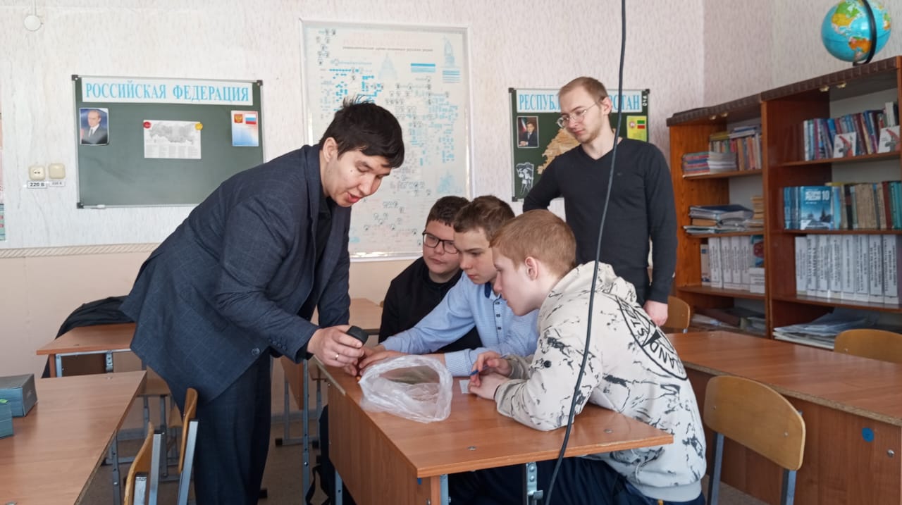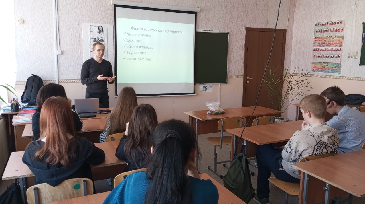 Занятие с учащимися аграрного 7 класса в очном формате урок-практикум провели представители двух вузов: Гаевский Максим Сергеевич, аспирант кафедры физиологии и патологической физиологии КГАВМ (Казанской государственной академии ветеринарной медицины имени Н.Э. Баумана) и представитель Казанского государственного аграрного университета, Семенов Павел Геннадьевич, кандидат наук, ассистент кафедры растениеводства и плодоовощеводства.