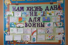 Для обеспечения исторической истины о событиях Второй мировой войны и сохранения памяти об ужасах Холокоста и блокады Ленинграда в нашей школе была организована выставка детских рисунков «Нам жизнь дана не для войны». Дети выражают в своих рисунках своё отношение к этим событиям истории, а взрослые, в свою очередь, не дают молодому поколению забыть о том, какой ценой завоёвывалось мирное небо над головой, какие подвиги совершались ради этого. На рисунках учеников, принявших участие в выставке, запечатлены символы мира и добра, как символы победы над черными страницами истории человечества.