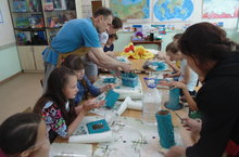 Сегодня также в пришкольном лагере руководитель кружка МЦ-2 Некорыстнов Ю.В. провел мастер-класс по созданию предметов интерьера. Таким мастерством заинтересовались даже и воспитатели и попробовали изготовить вазы, органайзеры, зеркала, горшочки.