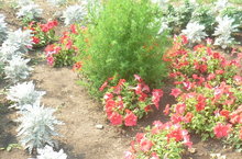 Учащиеся, проходящие трудовую практику, постоянно ухаживают за цветниками перед фасадом школы.