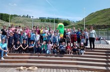 В Международный день защиты детей, на набережной г.Заинска прошла конкурсная –игровая программа «Маленькие дети на большой планете» для детей из пришкольного лагеря «Город детства». Сотрудники музея и специалисты молодежного центра «Ритм» подготовили конкурсы для детей на разных площадках. Сотрудники музея провели игры «Невод», «Сороконожка», «Поймай рыбу», «Поймай дракона за хвост», «Сантики-Фантики-Лимпопо». Попробовать необычные гимнастические трюки, перепрыгнуть через канат или пройти под ним, демонстрируя чудеса ловкости можно было на белом песке или сыграть в пляжный волейбол. Ну ведь любой праздник должен быть волшебным, и музейщики удивили ребят. Мыльные пузыри обожают дети различных возрастов, они продолжают входить в список любимых забав. Радужные, большие и маленькие пузыри украсили набережную и каждый ребенок смог загадать желание и поймать небольшой шарик счастья. На общей фотографии, как по мановению волшебной палочки появилась Фьёк – радужная хлопушка, она подарила всем улыбки и хорошее настроение.
