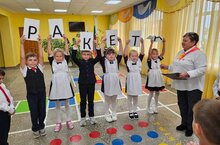 Суть игры заключалось в том, что ученикам выдается лист бумаги, на которой находится буква. Советник задаёт вопросы, а команда, показывая ответ, в полной тишине выстраивается в слово. К примеру, вопрос «Что летает в космос?», обучающиеся, которые держат буквы «Р», «А», «К», «Е», «Т», «А» – выстраиваются – в линию, а затем поднимают руки вверх, показывая готовность ответа. Кто живет на речке?- ученики находят слово «РАК» ; На чём ездила королева?- ученики находят слово «КАРЕТА» итд…