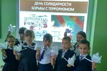 Акция в рамках Месячника «Экстремизму – Нет!», приуроченная ко Дню солидарности в борьбе с терроризмом «Белый журавль» 04.09.2017 Ребята школы приняли участие в акции, приуроченной ко Дню солидарности в борьбе с терроризмом ТРО «Российское движение школьников» «Белый журавль». Учащиеся 2-8 классов изготовили белых журавлей из белых листов бумаги в технике «Оригами» и почтили память о трагически погибших минутой молчанья.