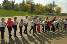 Учащиеся школы с 1 по 11 класс и педагоги приняли участие в спортивной акции в рамках республиканских массовых соревнований «Кросс Татарстана – 2015».