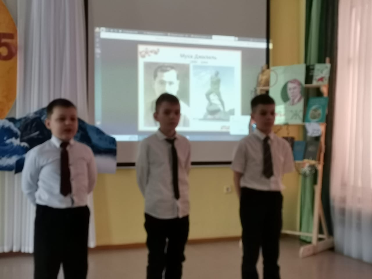 15 февраля в МБОУ «ЗСОШ №2» провели внеклассное мероприятие под названием «Его имя в наших сердцах». На выставке были представлены книги и журнальные статьи, посвященные жизни и творчеству знаменитого поэта. Ученики 2, 5 и 7 классов прочитали стихотворения Мусы Джалиля. Светлана Гарифзяновна познакомила школьников с биографией и творчеством татарского поэта. Также была подготовлена выставка книг.
