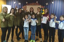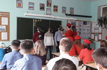 В рамках Месячника гражданско-патриотического воспитания и спортивно-массовой работе отряд юнармейцев провел мастер-классы по гражданской обороне. Юнармейцы задавали ребятам вопросы по гражданской обороне, рассказывали о правильном поведении в случае возникновения ЧС. Особенно, ребятам очень понравился мастер-класс по использованию средств защиты органов дыхания.