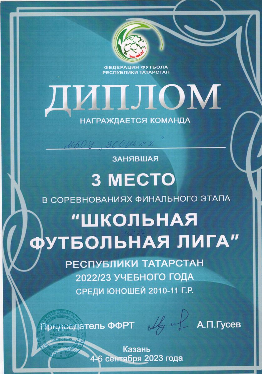 Школьная футбольная лига: Диплом 3 степени