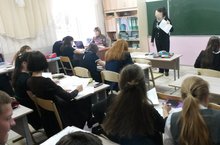 В рамках акции «Осенняя неделя добра - эстафета добрых дел», с выездной экскурсией в школу приехали сотрудники краеведческого музея : Долгова С.И. – старший научный сотрудник, Бутакова Ю.И. – научный сотрудник. Для учащихся 7 класса было проведено экскурсионное занятие, посвященное 71 годовщине Победы в ВОв «Их имена никогда не забудут». Ребятам рассказали о выпускниках Заинских школ 1941 года, о раскопках, работе «Вахты памяти», о солдатских медальонах и показали «Книгу памяти», в которой каждый ребенок мог найти своего погибшего деда или прадеда. В конце занятия ребята почтили погибших минутой молчания.