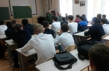 Согласно графика посещения образовательных организаций представителями отдела ВК РТ, для юношей 9,10,11 классов была организована и проведена информационно-разъяснительная работа по военно-профессиональной ориентации. Ознакомительную беседу по поступлению в военные вузы провели военный комиссар г.Заинска и Заинского района РТ Аглямзянов Айрат Фоатович, майор запаса-Гурьянов Александр Юрьевич, подполковник запаса - Афанасьев Александр Николаевич.