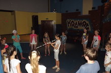 Сегодня дети пришкольного лагеря «Солнышко» посетили площадку ДДТ. Мероприятие «Разноцветный хоровод» было интересным, веселым, захватывающим. Цели мероприятия это раскрытие эмоциональности, воспитание в детях стремления заниматься различными видами музыкальной деятельности посредством музыкальных игр. Ребята были эмоционально раскрепощены, активно участвовали в конкурсах. Работало жюри. Они оценивали выступление отрядов. Ребята искренне радовались своей победе.
