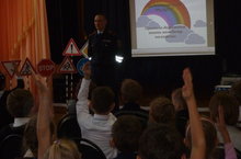 Перед учениками выступил инспектор ГБДД. Ребята еще раз повторили дорожные знаки, сигналы светофора для водителей и пешеходов. Затем руководитель мероприятия Сафаргалиева З.А. показала детям мультфильмы по ПДД со Смешариками. По ходу просмотра ребятам задавали вопросы. Мероприятие было очень интересным и познавательным.
