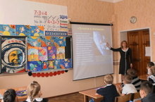 Для учащихся 1-х классов Киявина Н.А. подготовила внеклассное мероприятие « О космосе и космонавтах». Ребята с большим интересом смотрели презентацию, видеоролик о начале полета Ю.А. Гагарина в космос. Первоклашки задавали учителю много вопросов, а так же узнали и о знаменитом событии – приземлении на заинской земле собаки Чернушки, в честь которой был установлен памятник.
