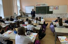 В рамках недели безопасного движения c обучающимися 1-х классов встретился Начальник Заинского отделения ГБУ «БДД» Иванов В.В. Он напомнил учащимся о безопасности пешехода и пассажира.