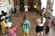 Ежедневные мероприятия: прием детей, мониторинг за состоянием здоровья детей, термометрия. Соблюдение санитарно-эпидемиологических требований в условиях распространения новой коронавирусной инфекции COVID-19, прогулка, игры на свежем воздухе, итоги дня, правила ПДД.Весь день прошел под девизом: «Нам весело и здорово». Дети играли в парке имени И.Ш\ Фардеева, приняли участие в флэш-мобе, пели, танцевали, играли.