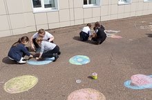 13 апреля учащиеся 3б класса рисовали на асфальте рисунки, посвященные ко Дню космонавтики.