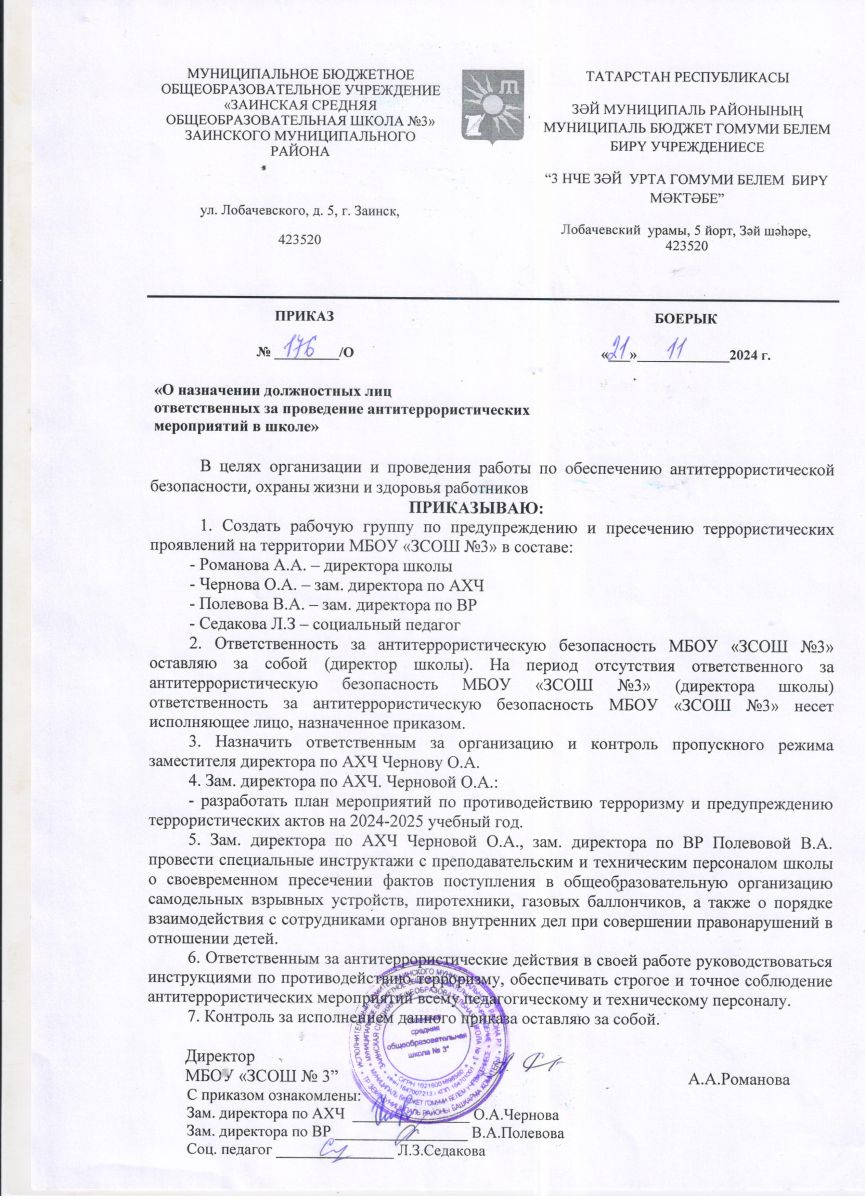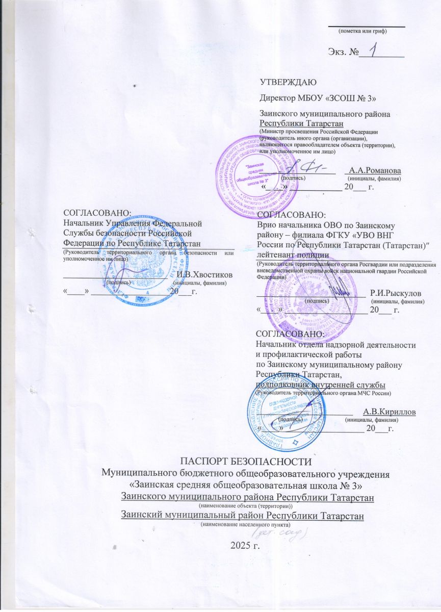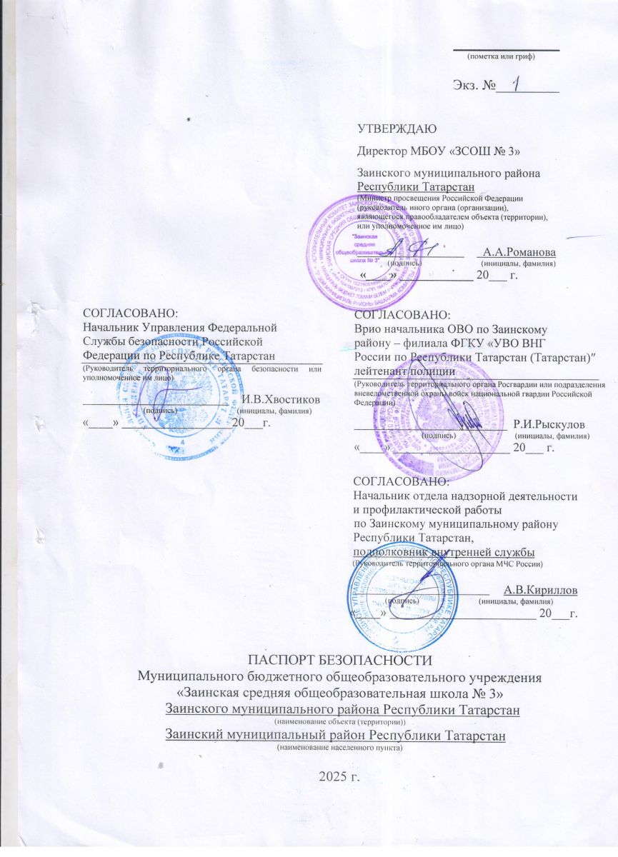 Паспорт безопасности МБОУ "ЗСОШ №3" ЗМР РТ (ул.Лобачевского - титульный лист)