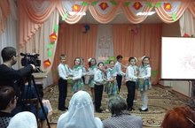 С поздравленииями пришли школьники в детский сад "Рябинка" . Они поздравили коллектив ДОУ и преподнесли в подарок художественные номера.