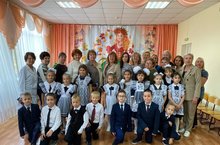 Первоклассники поздравили работников ДОУ "Рябинка" с профессиональным праздником - Днем дошкольного работника. Рассказали стихотворения, исполнили песню, подарили цветы.