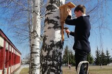 Члены школьного лесничества с добровольцами школы изготовили и разместили скворечники. Известно, скворцы никогда не гнездятся под открытым небом. При недостатке скворечников они селятся в дуплах, где строят гнезда из травы, веточек и шерсти животных.