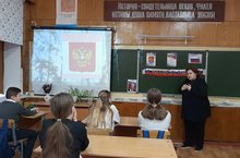 На классных часах сегодня велась беседа о символах России- гербе, флаге, гимне России. школьники просмотрели видео о символах Российской Федерации, рассмотрели и обсудили значение изображения на гербе. Педагоги напомнили историю российского флага. 25 декабря 2000 года президент РФ Владимир Путин подписал конституционный федеральный закон «О Государственном флаге Российской Федерации». В нём говорится, что «Государственный флаг Российской Федерации представляет собой прямоугольное полотнище из трёх равновеликих горизонтальных полос: верхней – белого, средней – синего и нижней – красного цвета».