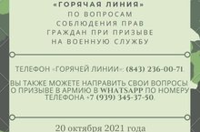 Горячая линия по вопросам соблюдения прав граждан при призыве на военную службу