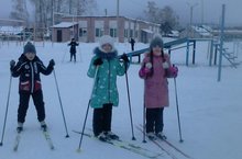С горы спускаюсь и в сугроб- бах!Ходьбой на лыжах заняты младшие школьники на группе продленного дня.