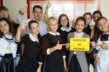 Активисты 8-го класса провели акцию привлечения внимания к голосованию за размещение символа г. Казани на 200- рублевой купюре. Пока в голосовании на сайте www. твоя -Россия приняло 56 учащихся,
