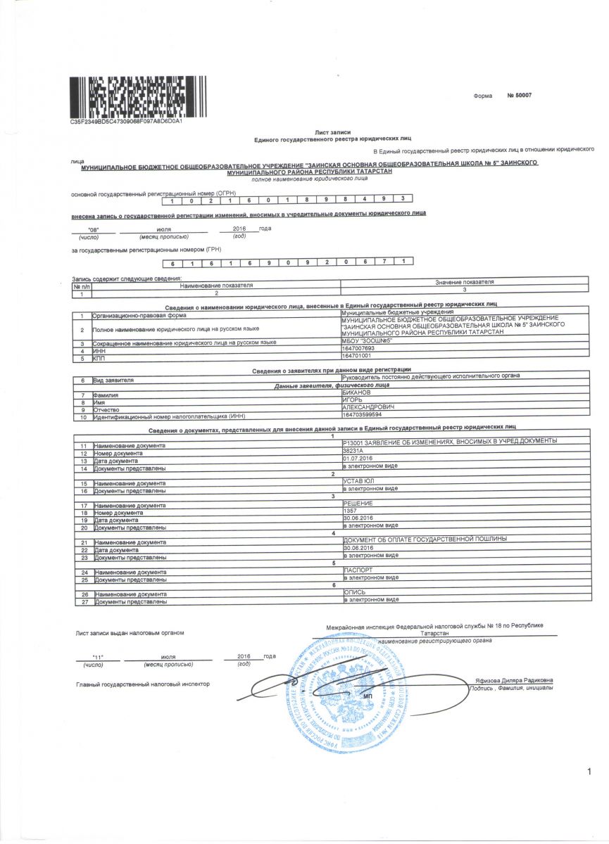 Муниципальное бюджетное общеобразовательное учреждение «Заинская основная общеобразовательная школа №5» Заинского муниципального района РТ