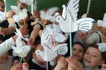 В рамках акции "Наследники победы" 23 сентября учащиеся школы приняли участие в акции "Единый час духовности "Голубь мира".