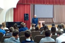 25 сентября в актовом зале школы для учащихся 8-х классов председатель совета ветеранов отдела полиции Н.М.Ефимов провел лекцию на тему "Мы против экстремизма и терроризма!".