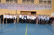 Второй день школьного смотра строя и песни среди учащихся 5-11 классов продолжили ученики 9-х классов. Каждый класс показал умение ходить строевым шагом, исполнение строевых песен, сплоченность и слаженность коллектива. Победителем стали ученики 9в класса, 9г - заняли второе место, третье место разделили 9б и 9а классы.