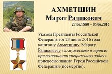 Герой Российской Федерации АХМЕТШИН Марат Радикович 26.04.2017