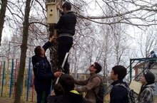 В парке школы учащиеся старших классов повесили скворечники, изготовленные учениками нашей школы и их родителями.