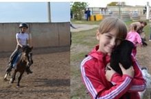 Помимо лошадей дети повстречали и других жителей школы: целое семейство щенят с матерью, с которыми смогли немного поиграть.